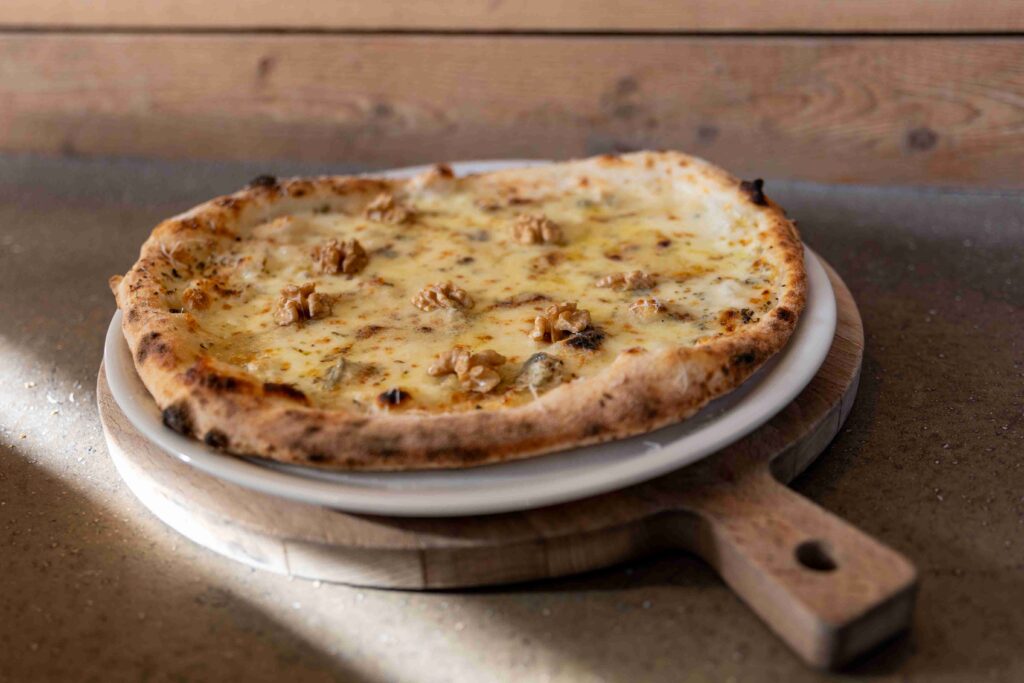 Fontina is romig en nootachtig, ideaal als tegenhanger van pittige toppings zoals salami of ’nduja. En wie durft, kan kiezen voor gorgonzola. De zachte dolce-variant geeft een romige, lichtpittige toets, terwijl gorgonzola piccante je pizza een uitgesproken karakter geeft. Vaak wordt deze in kleine dotjes verdeeld, zodat elke hap een verrassing is.